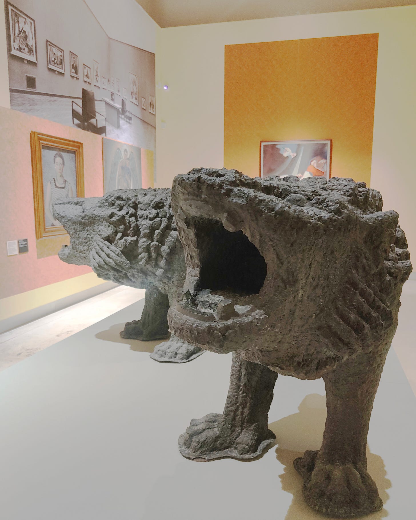But there is another floor just above, and here is where the exhibition for me clicked together: “Q-1935, I Giovani e i maestri: La Quadriennale del 1935, curated by Walter Guadagnini (the young and the masters, the 1935 Quadriennale) which gives us an obligatory window into the past. You find yourself being transported up—via monumental staircase or inside mini-elevator cabin— into this excerpted collection from another era, Mussolini Fascist, to be precise, where we are provided glimpses of what must have been a truly impressive, if not somewhat questionable mise en scène of artworks, sculptures, architectural creations. Less successful are the wall size photographic backdrops depicting black and white images from the original rooms from 1935 that look too much like overblown screen shots from a web search. Nonetheless I kept finding myself fantasizing about shuffling around inside the grainy old photographs rather than out in the reality of the second floor.